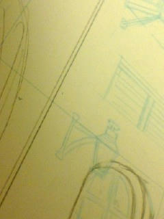 計算ミスにより人物を大きく描きすぎる→めんどくさいから描き直さない→アオリ以前に背景が入らない→無理矢理入れる→さらに無理矢理パースをつける→とてもじゃないが見せられないよ!!←今ここ